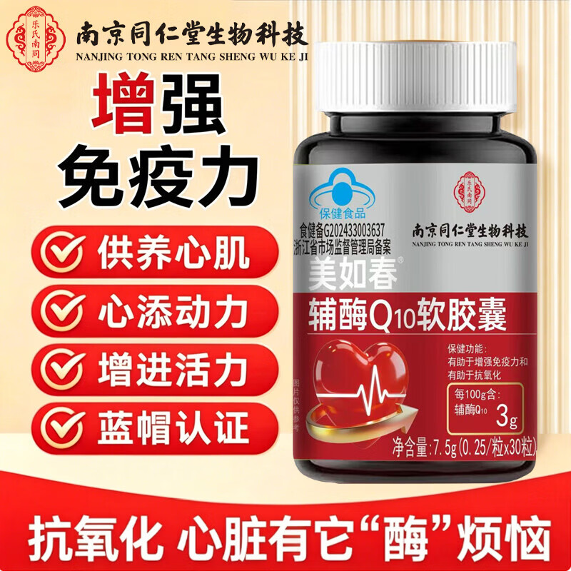 南京同仁堂辅酶q10软胶囊中老年人心脏增强免疫力 【1瓶体验装】 30粒*1瓶 60粒/瓶