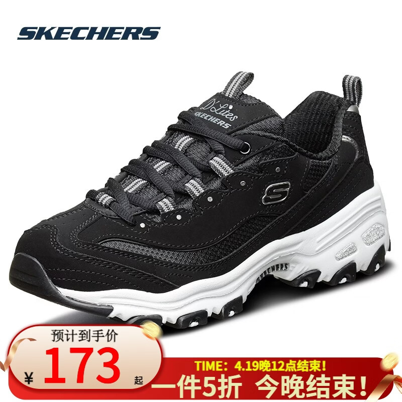 斯凯奇女鞋2025春秋新款黑色熊猫鞋休闲鞋女厚底增高老爹鞋女运动鞋 11930-BLK 38 /参考常规尺码38.5-39码左右