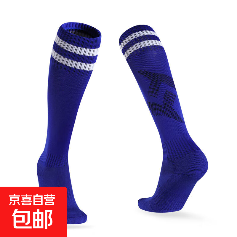 【加厚防滑】儿童薄球专业足球运动袜子男女过膝长筒袜子 【单双】蓝色 儿童常规款【30-37鞋码】