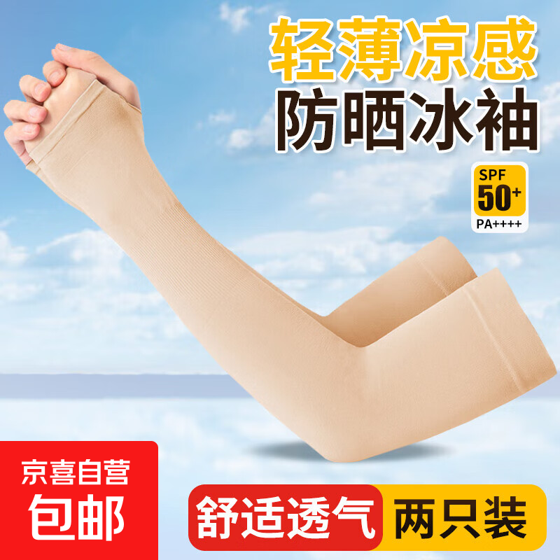 夏季防晒袖冰袖冰丝凉感透气户外开车骑行户外运动防晒冰袖套 肤色【拇指冰袖】30cm
