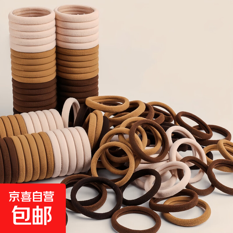 高弹力发圈无接缝发绳纯色不勒发毛巾圈秋冬奶咖色高马尾头绳 咖色系发圈-100根混色