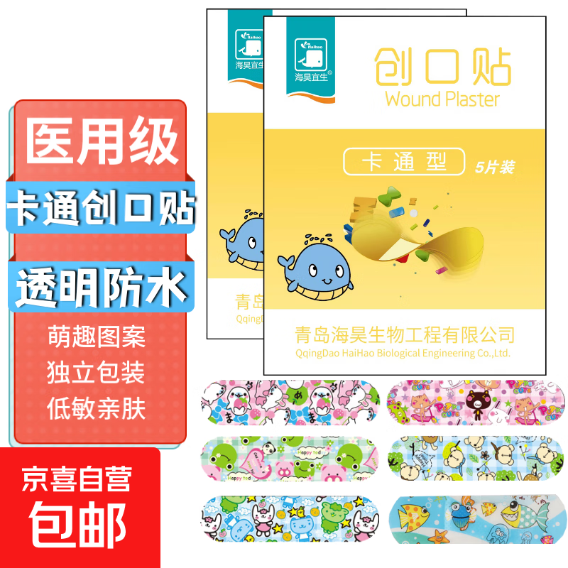 海昊宜生创口贴可爱卡通防水创可贴洗澡游泳透明隐形止血贴弹力透 卡通透明防水【5片/袋】药店款