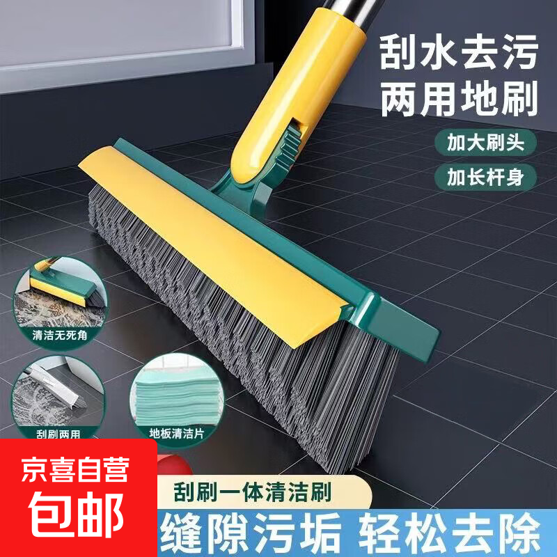 卫生间地板刷刷洗两用浴室地刷多功能刷子长柄硬毛去死角洗地家用 地刷【黄绿色赠壁挂夹】 1把