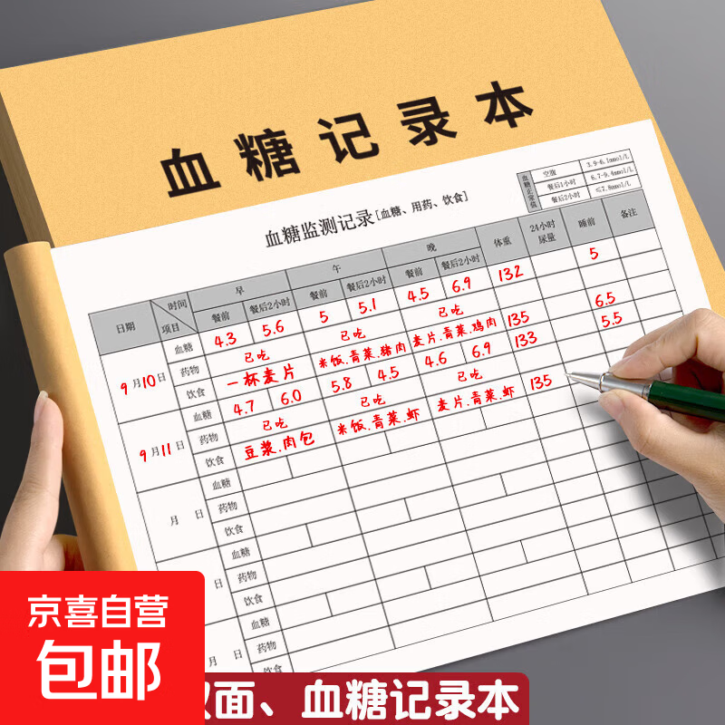 血糖记录本自我监测血压记录本高血压糖尿病患者孕妇日常饮食检测记录血糖血压记录表 1装【血糖记录】
