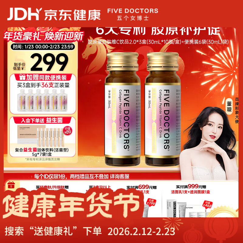 五个女博士胶原蛋白肽维C饮小分子EGCG升级口服液态饮品送礼物花少同款官旗 新春尝鲜【经典肽2.0】 10瓶*3盒 +6袋便携装