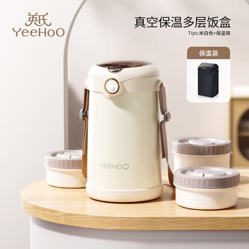 英氏(YEEHOO)保温饭盒孕妇月子保温汤婴儿辅食三层保温饮盒316外带保温 真空保温多层饭盒【米白色】