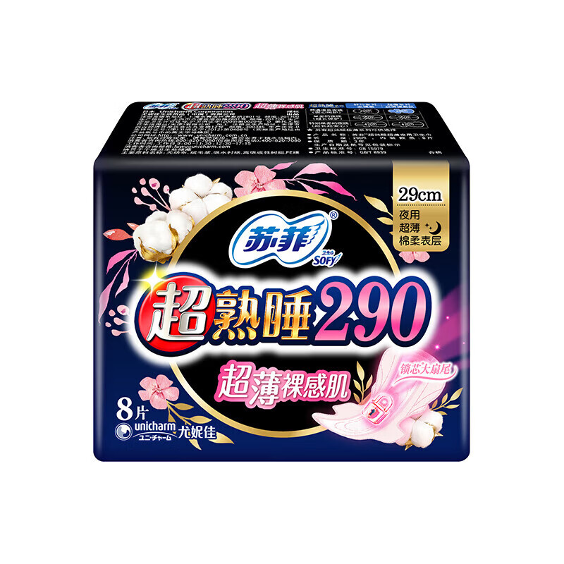 苏菲卫生巾超熟睡420/350/290超长夜用量多日用女生姨妈巾 290mm裸感肌8片