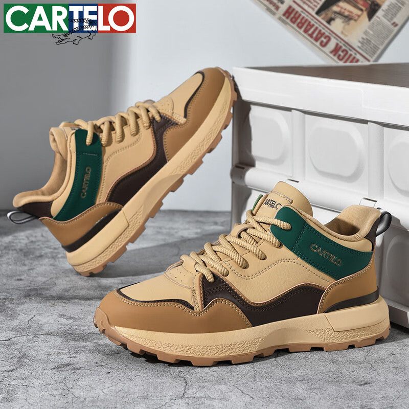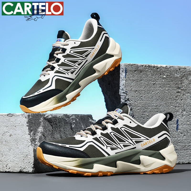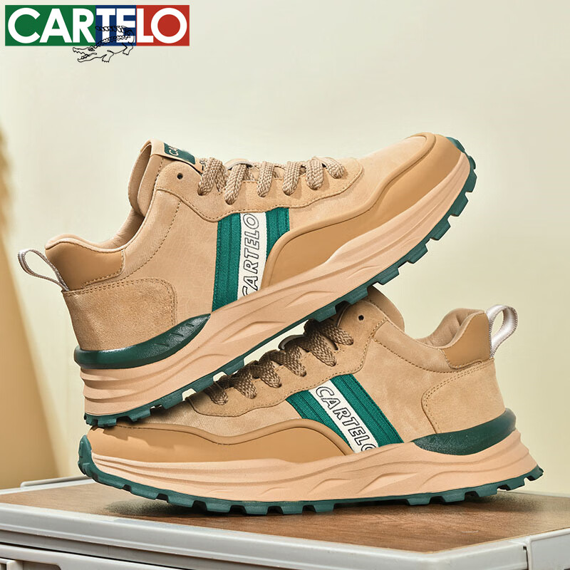 卡帝乐鳄鱼休闲鞋男时尚潮流透气网面运动鞋防滑轻便百搭跑步鞋 QH8313黄棕 42