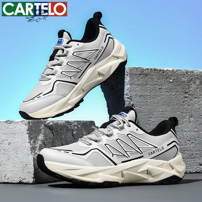 卡帝乐鳄鱼男鞋时尚休闲鞋春夏新款男士低帮透气运动鞋男潮流百搭鞋子 米灰[透气款]QH3371 39