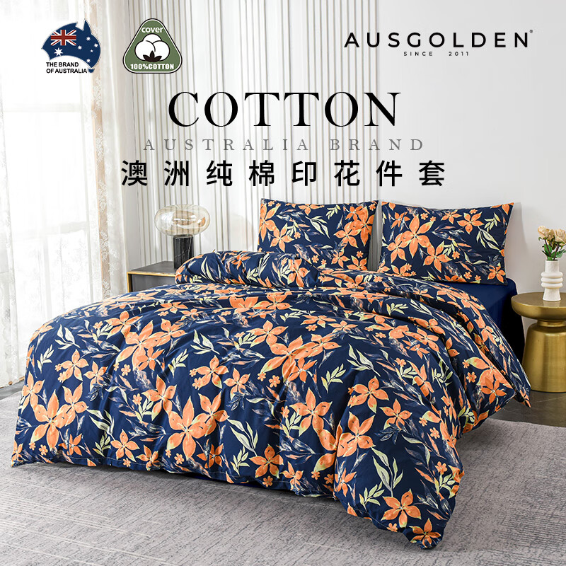 AusGolden澳洲品质纯棉四件套床上用品亲肤全棉A类抗菌防螨被套床单轻奢床 霍巴特树兰 四件套双人床(被套200*230cm)