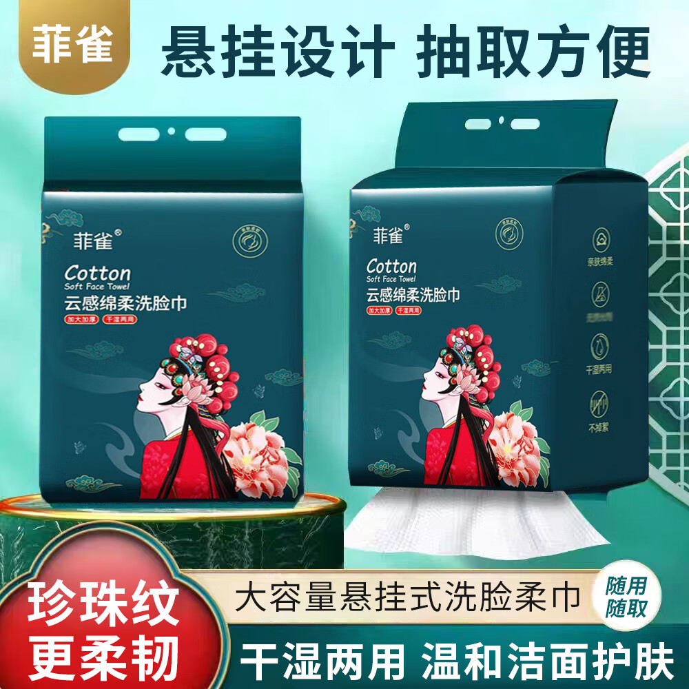 菲雀洗脸巾悬挂式洗脸巾一次性洗脸巾绵柔巾婴儿学生宿舍卸妆专用 常规款 100抽 国潮洗脸巾x1包