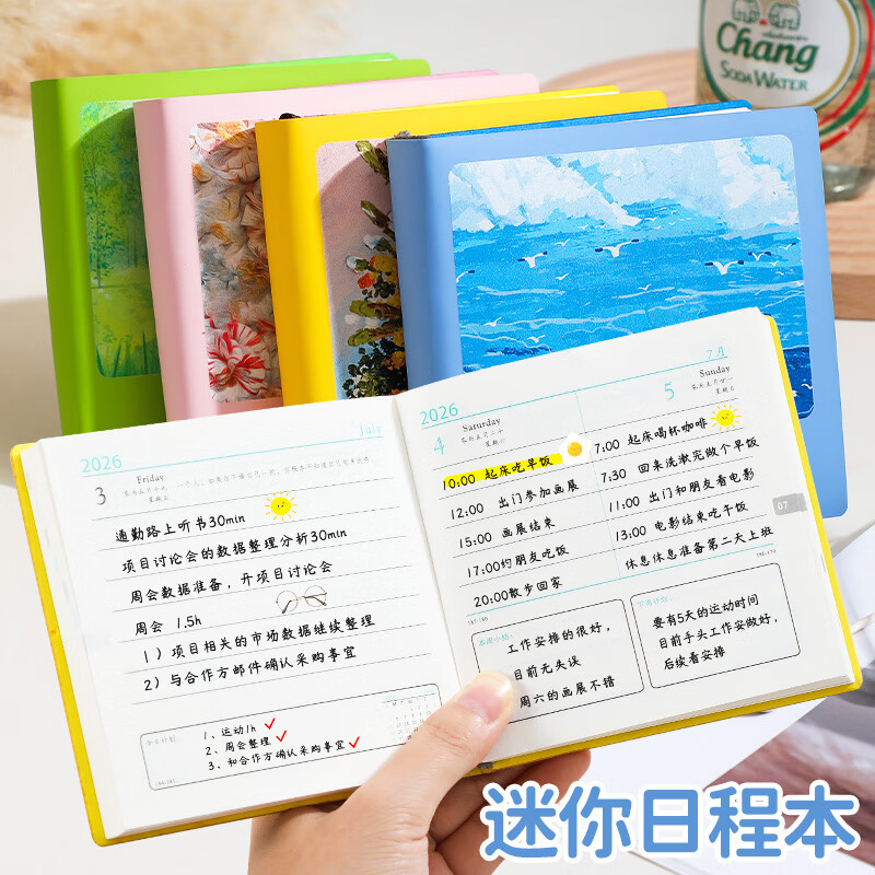 佐澜哲2026年日程本随身方形口袋本高颜值花卉每日计划本自律打卡本效率手册笔记本学习记事本 天蓝色