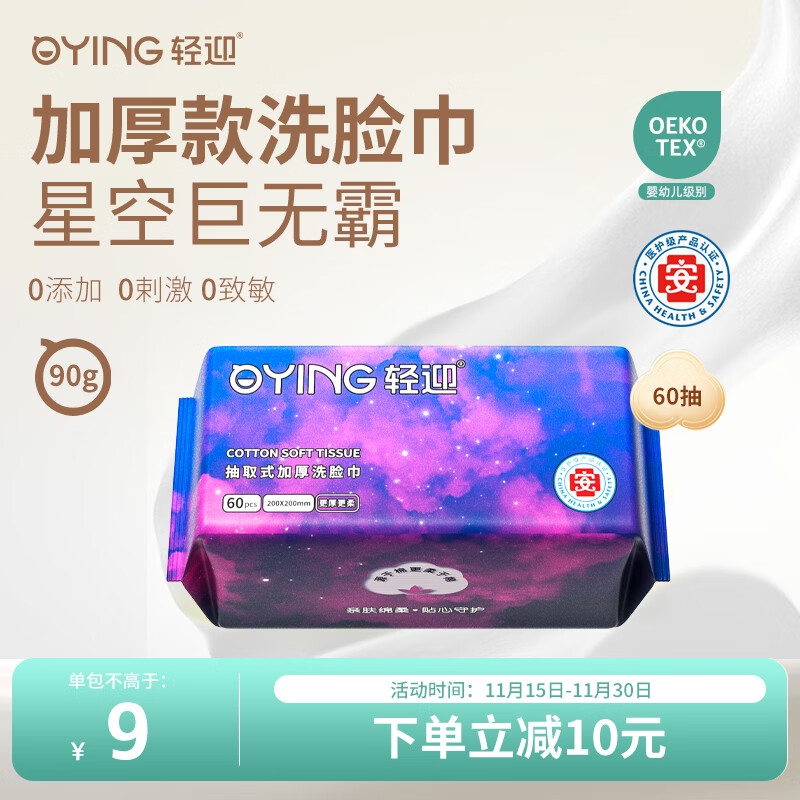 轻迎绵柔巾60抽/包 一次性洗脸巾加大加厚20*20cm