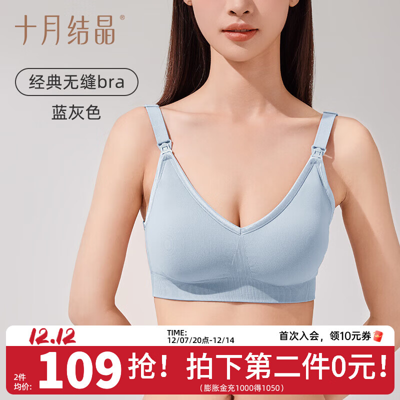 十月结晶哺乳文胸孕妇内衣产前产后喂奶胸罩聚拢 蓝灰色【经典无缝】 S