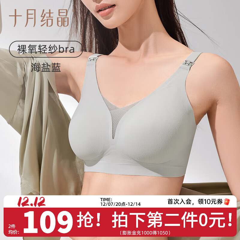 十月结晶哺乳文胸孕妇内衣产前产后喂奶胸罩聚拢 海盐蓝【裸氧轻纱】 XL