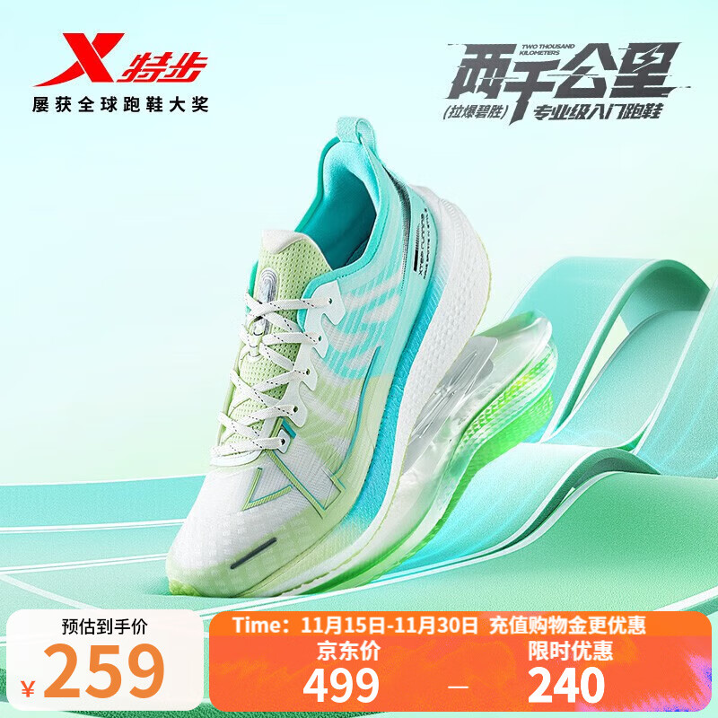 特步(XTEP)两千公里跑鞋|运动鞋男女鞋马拉松竞训减震轻便耐磨跑步鞋2000KM 帆白/果冻绿-男 41