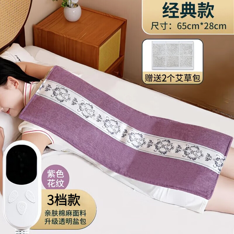 战立克海盐热敷包热敷袋艾草电加热控温家用大颗粒盐袋子艾草腰带全身通 【紫色3档调温】+双层可视海盐+2艾草包