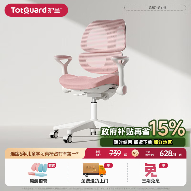 护童(Totguard)儿童学习椅写字椅家用可升降调节靠背座椅升降椅儿童人体工程学椅 G501-奶油桃(无脚踏)