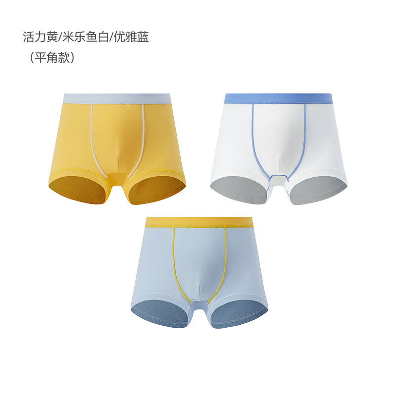 米乐鱼儿童内裤10A抗菌透气无痕男女孩宝宝中大童平角不夹pp平四角短裤 活力黄+米乐鱼白+优雅蓝 3条 男童 130 推荐体重22-26kg