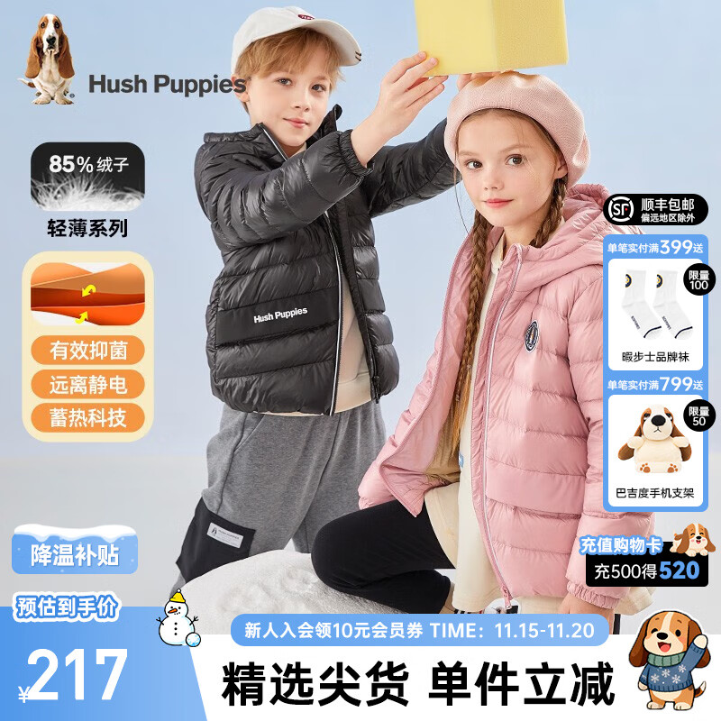 暇步士(Hush Puppies)童装儿童男女大童冬装新款锁暖石墨烯轻薄时尚羽绒服外套 钻石黑 150 cm