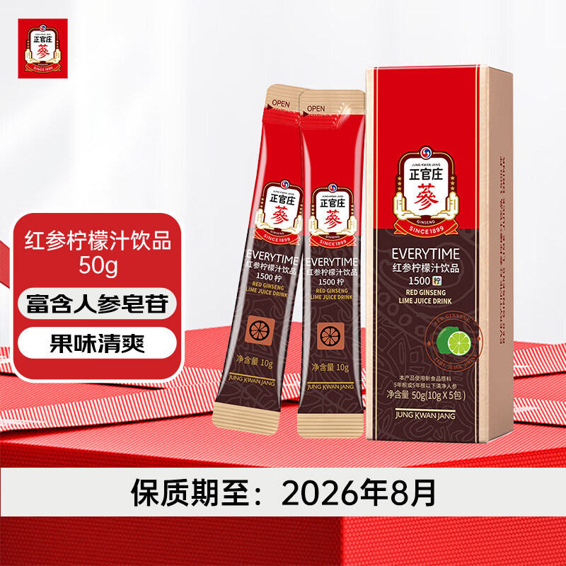 正官庄EVERYTIME红参浆柠檬饮品50g(10g*5袋) 有效期至2026.8月
