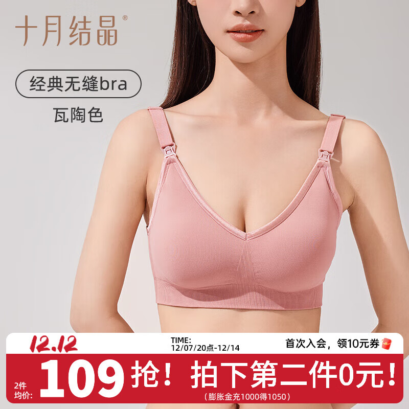 十月结晶哺乳文胸孕妇内衣产前产后喂奶胸罩聚拢 瓦陶色【经典无缝】 XL