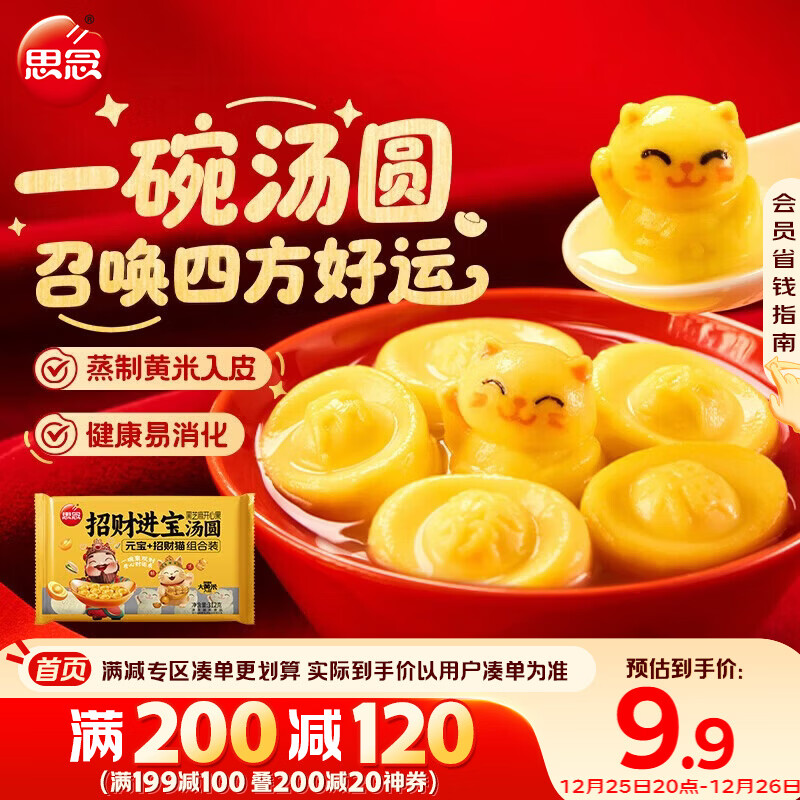 思念招财进宝黑芝麻开心果元宝+招财猫组合装汤圆312g 元宵年货送礼