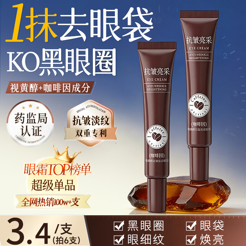 KISSMWAH咖啡因视黄醇眼霜淡化细纹提拉紧致黑眼圈眼袋眼纹抗皱紧致抗衰老 咖啡因视黄醇抗皱亮采眼霜30g*2【试用】