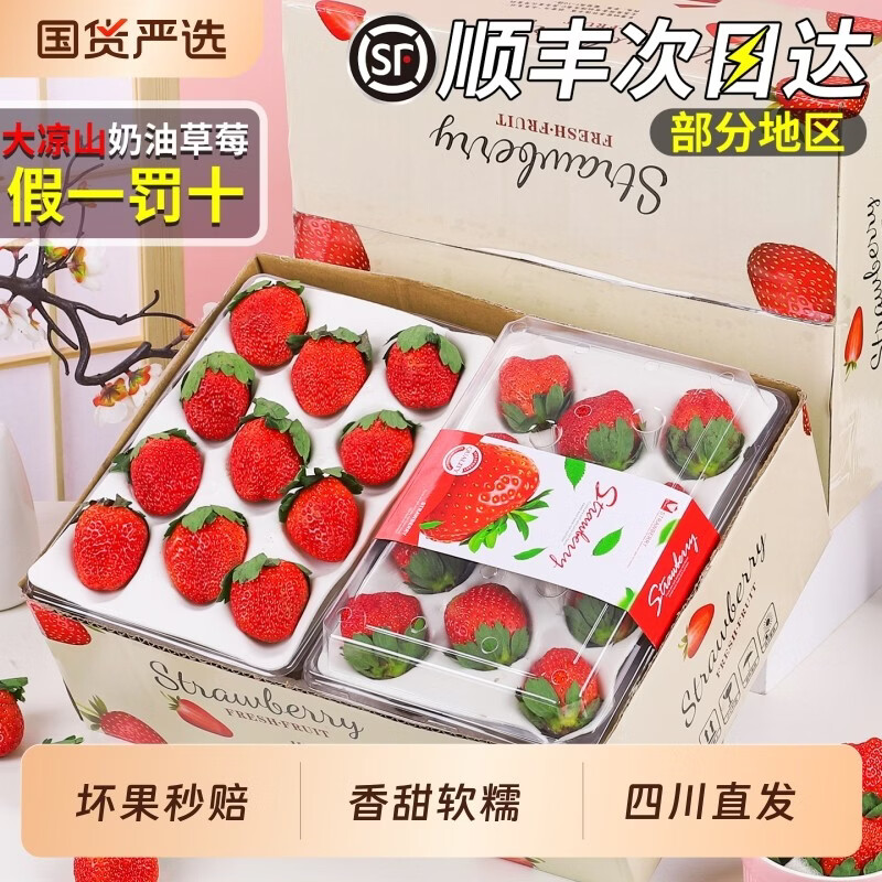 粤迎奶油红颜99草莓【JD顺丰多地次日达】四川大凉山草莓新鲜现摘现发 3斤SS+级商超果【单果18-25g】净2.4斤