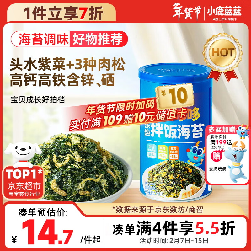 小鹿蓝蓝宝宝DHA鳕鱼肉松拌饭海苔碎40g儿童零食营养调味下饭佐餐寿司材料