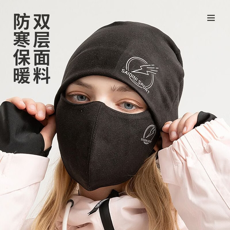 勋阳宇乐UV保暖口罩女冬季户外防晒防风防寒秋冬护脸3D立体德绒骑行面罩 黑色德绒口罩厚 均码