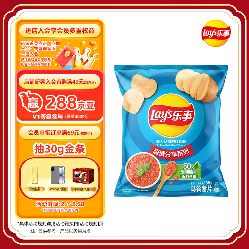 乐事(Lay's)薯片 意大利香浓红烩味 135克 休闲零食 膨化食品