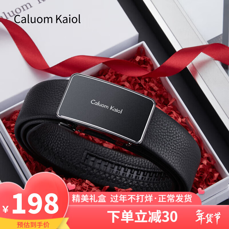 Caluom Kaiol品牌皮带男真皮男士腰带牛皮自动扣商务裤带情人节礼物送男友老公 【专柜礼盒】8037A/内穿式/儒雅银色 110cm -130cm默认随机(可修剪)需要其他尺码联系客服
