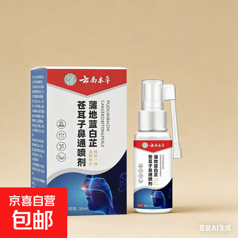 正品官方蒲地蓝白芷苍耳子鼻通安全防护喷剂鼻塞鼻痒鼻腔干燥通气鼻子喷雾 1盒 云南本草(苍耳子鼻通喷剂蒲地蓝白芷30ml