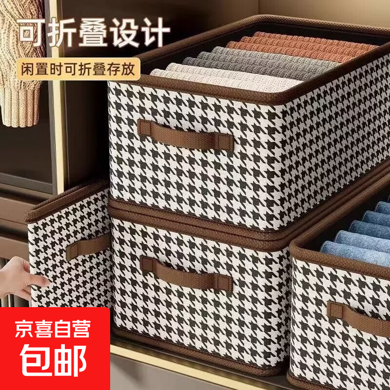 千鸟格收纳箱家用衣服裤子收纳盒分层衣柜可折叠整理箱收纳储物箱 衣物收纳箱40*28*20cm 1个