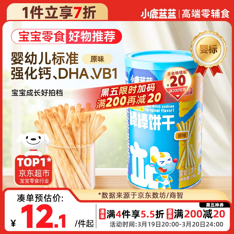小鹿蓝蓝 婴幼儿炭烧棒磨牙棒饼干宝宝儿童零食手指饼干130g