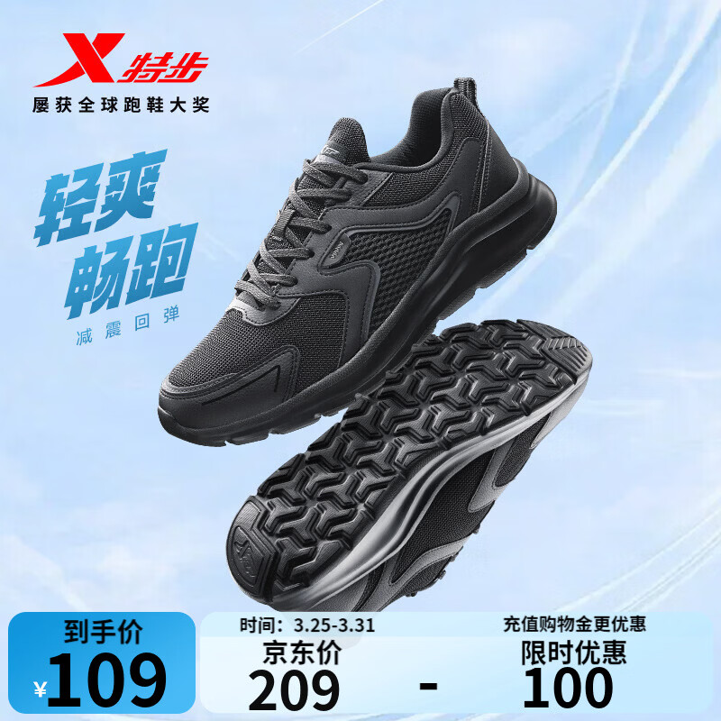 特步(XTEP)跑鞋男鞋春夏季新款轻便减震透气网面黑色运动鞋爸爸休闲跑步鞋子 【网面】黑 43