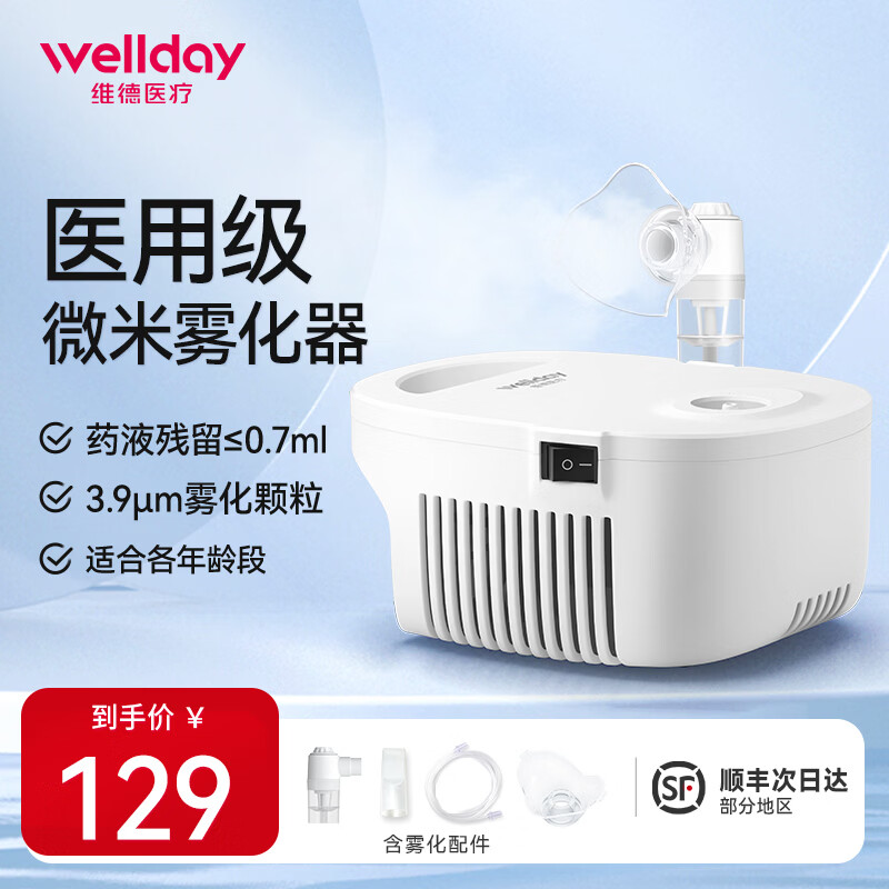 维德(WELLDAY)雾化器家用雾化机医用儿童成人老人空气压缩式雾化仪含面罩 【充分雾化】VP-C7