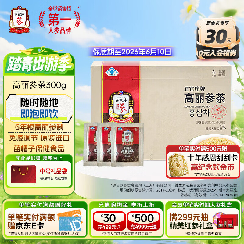 正官庄高丽参茶6年根红参人参茶300g(3g*100袋) 调节免疫原装进口