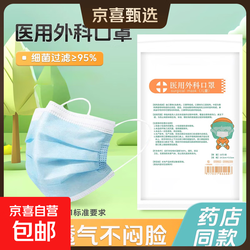 儿童口罩医用外科罩一次性医疗专用正品官方旗舰店宝小孩3到12岁 【10只】儿童医用外科口罩(10只/包)