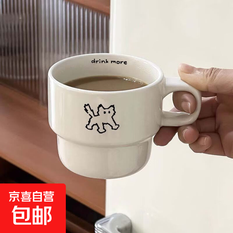 可爱小狗陶瓷马克杯情侣礼物 白色炸毛小猫