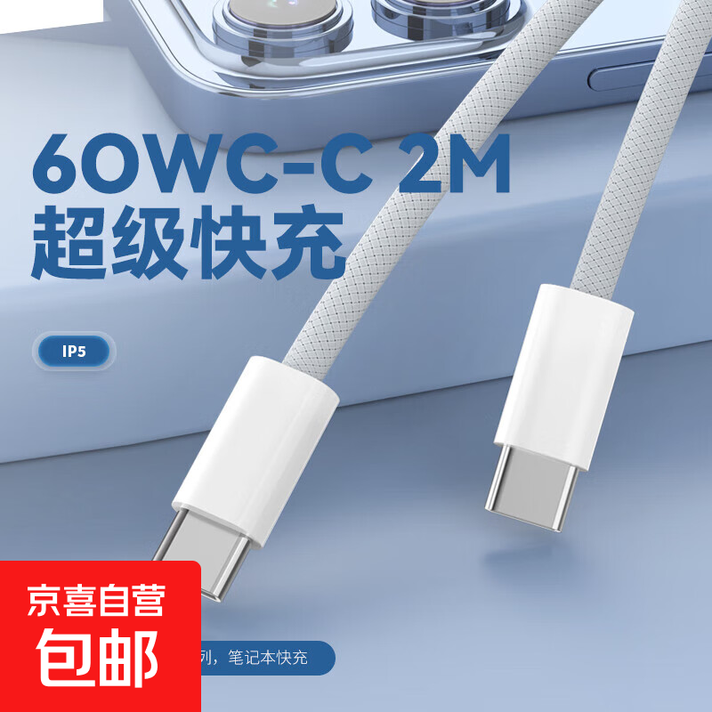 编织苹果16/15充电线Type-C数据线双头PD60W快充线ctoc车载适用iPhone16e/15pro平板iPad笔记本 白色C-C2米