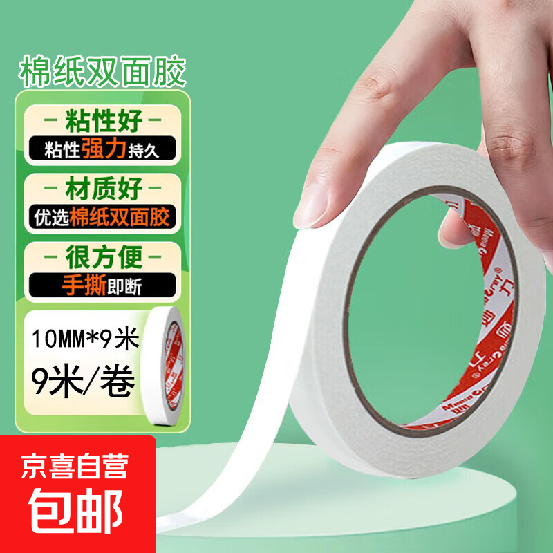 妙力MEEIAOREY双面胶带 棉纸双面胶 高粘度强力超薄可手撕 学生手工diy办公用 推荐 10mm宽*9米【高粘款】 6卷【巨划算】