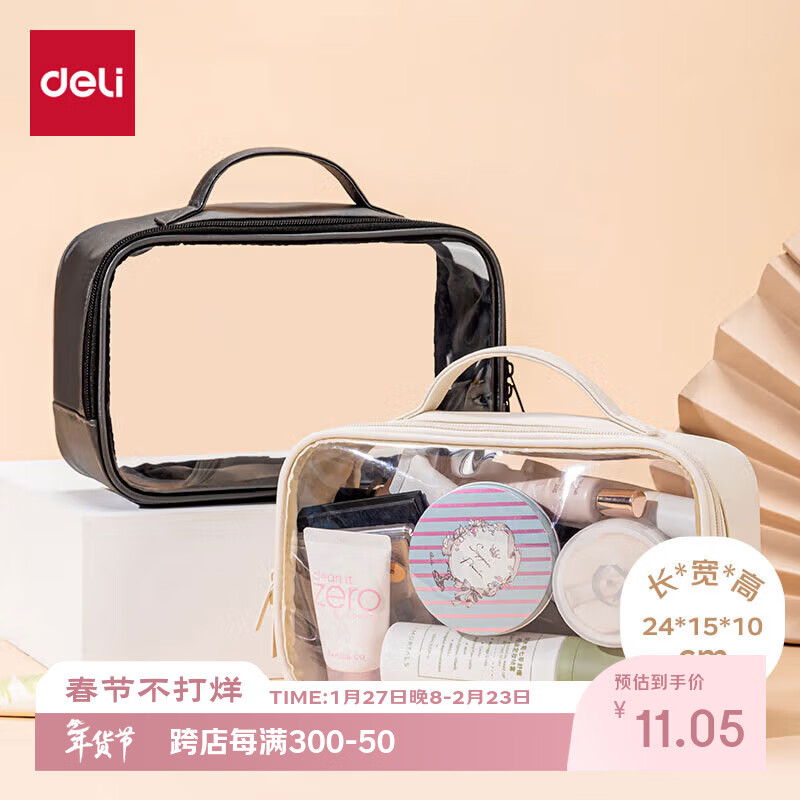 得力(deli)旅行收纳袋收纳包 化妆品洗漱收纳包 外出旅游手提 黑色 64871