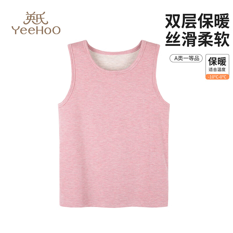 英氏儿童保暖背心内衣秋冬男女童加厚保暖柔软A类圆领居家睡衣打底 粉色【厚款】 110