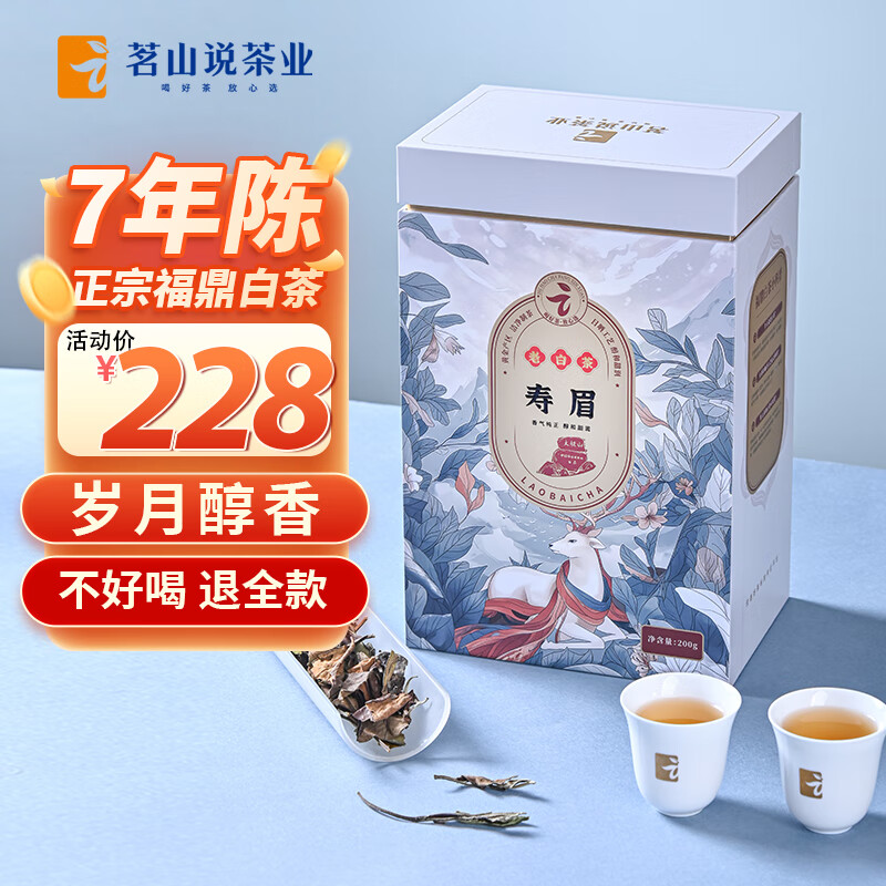 茗山说福鼎老白茶寿眉200g散茶礼盒装自己喝送礼送长辈【磻溪镇7年陈】
