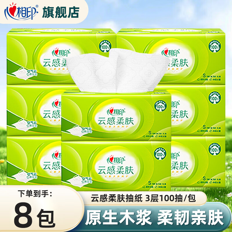 心相印抽纸卫生纸家用实惠装大包纸巾抽纸面巾纸餐巾纸超市同款整箱批发 3层 100抽*10包 【促销款】