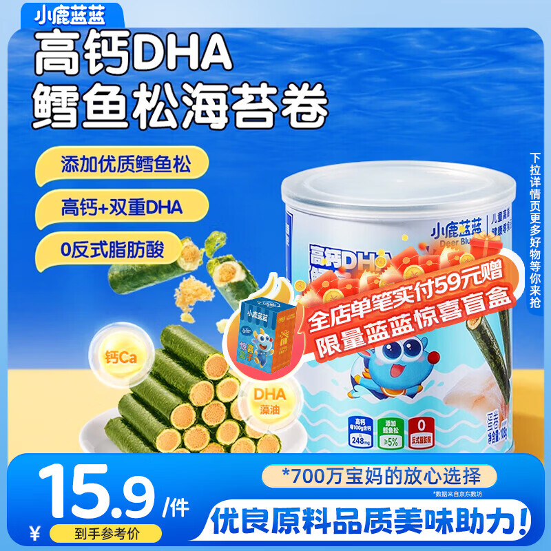 小鹿蓝蓝鳕鱼松海苔卷儿童零食宝宝营养食品高钙DHA蛋黄芝士夹心饼干 高钙DHA鳕鱼松海苔卷鳕鱼味/108g