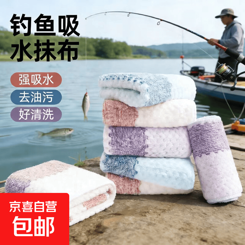 垂钓用品抹布毛巾珊瑚绒洗碗布不沾油擦碗擦桌子吸水钓鱼配件 2条【活动7】