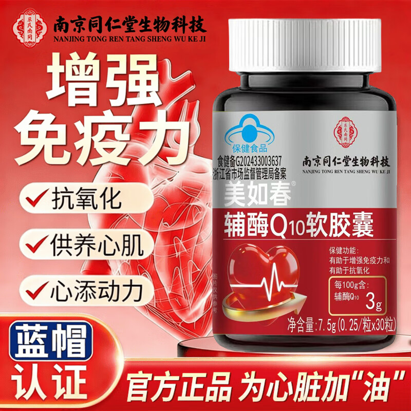 南京同仁堂辅酶q10软胶囊中老年人心脏增强免疫力抗氧化 【1瓶体验装】 30粒*1瓶 30粒/瓶